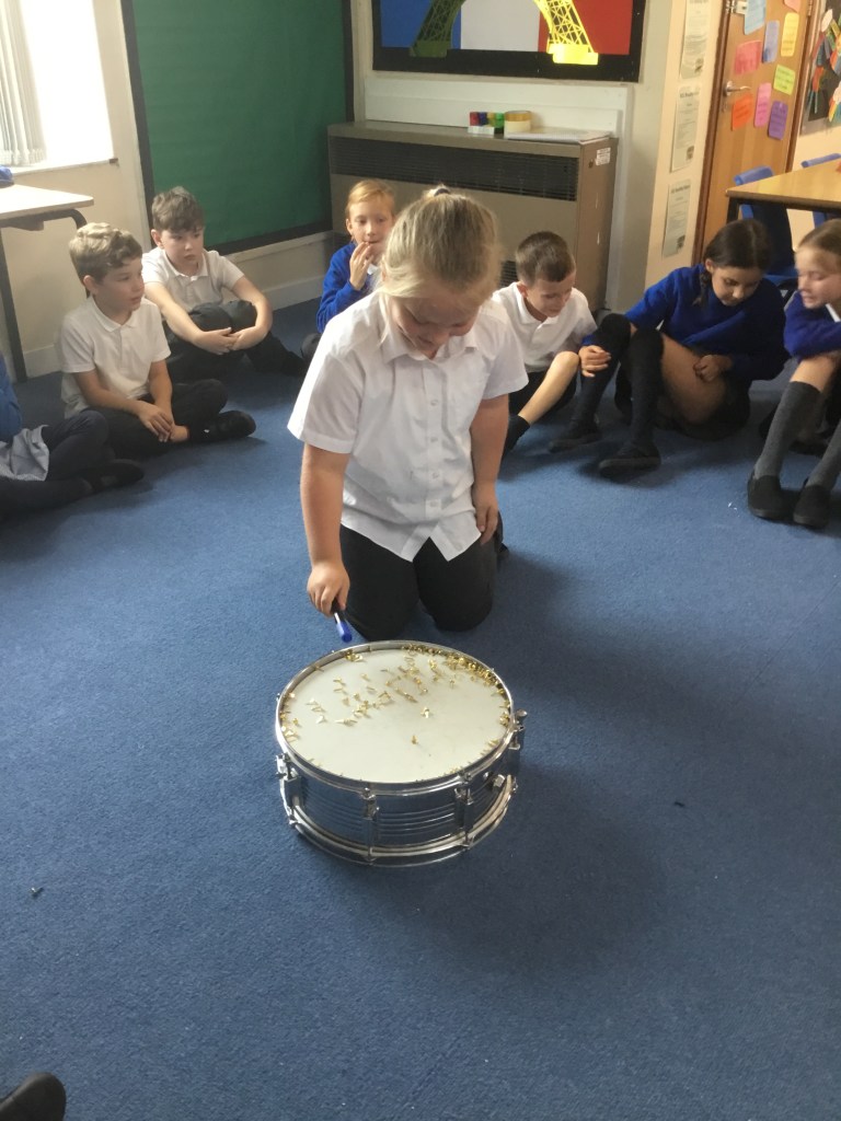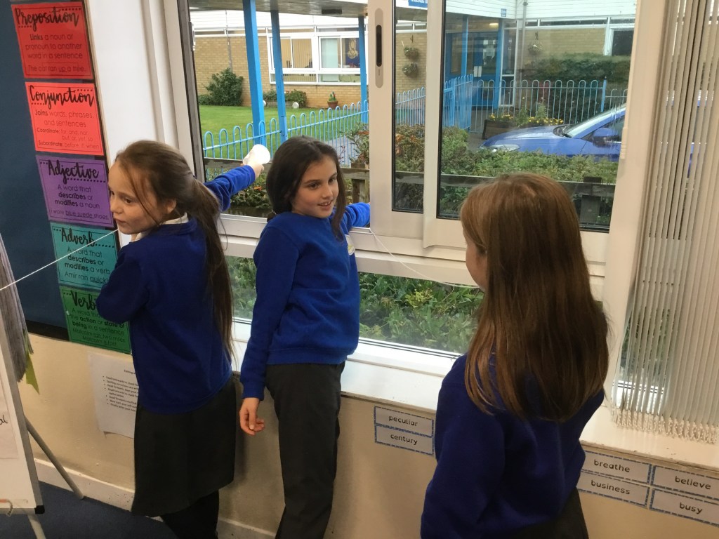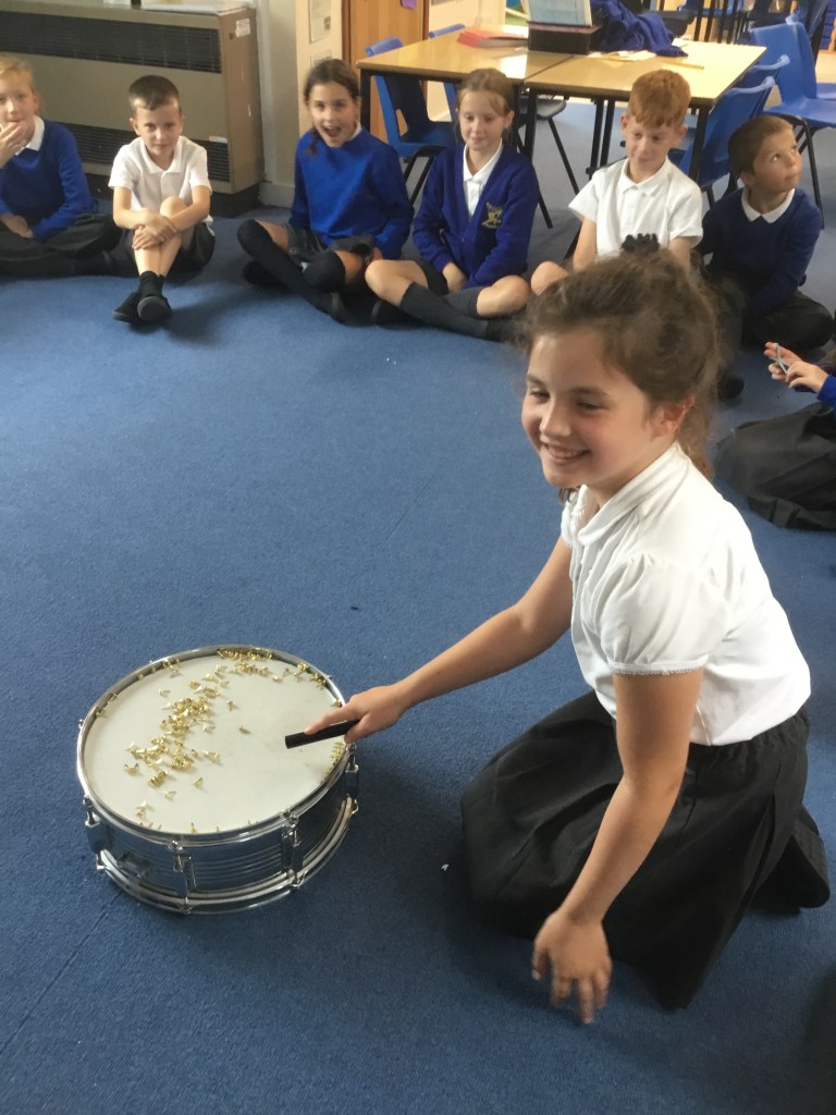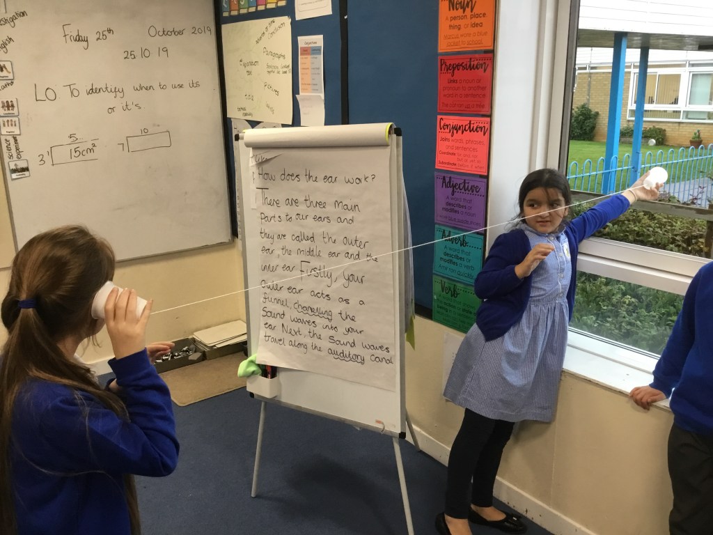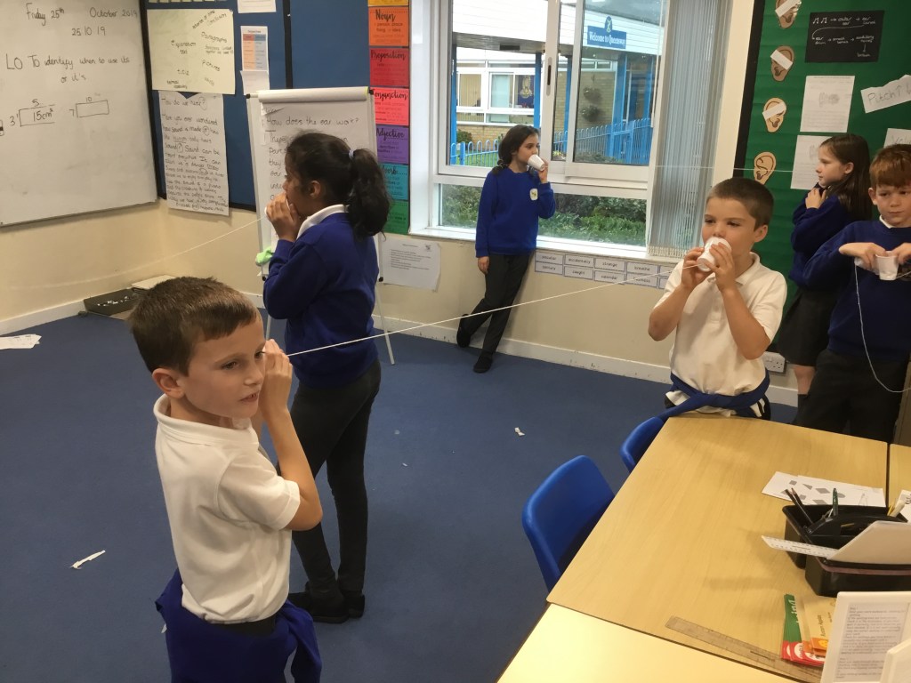 This term we have been learning all about sound and have been investigating how sound is made. We discovered that sound is made by vibrations which can travel through different mediums and then enter the ear. We looked at how the vibrations changed with different volumes and pitches and then acted out how the sound wave travels through the ear canal to the brain. At the end of our topic, we made string telephones and investigated different things. We made 4 way conversations and a telephone that stretched the entire classroom.We even investigated to see if the telephones would work outside. It has been lots of fun this term learning all about sound.