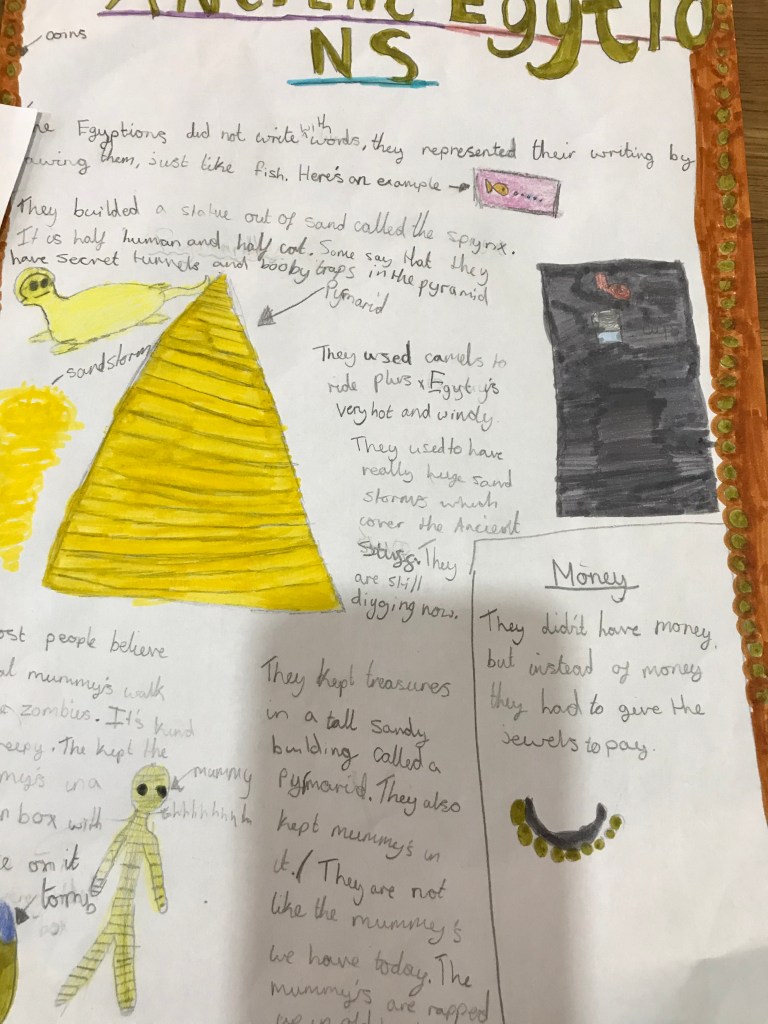 I love seeing photos of some of the learning and fun activities you have been up to at home or reading your comments about your work! Here are a few photos of some of the things Ira has been getting up to. Great work Ira – what a fantastic poster about the Egyptians.