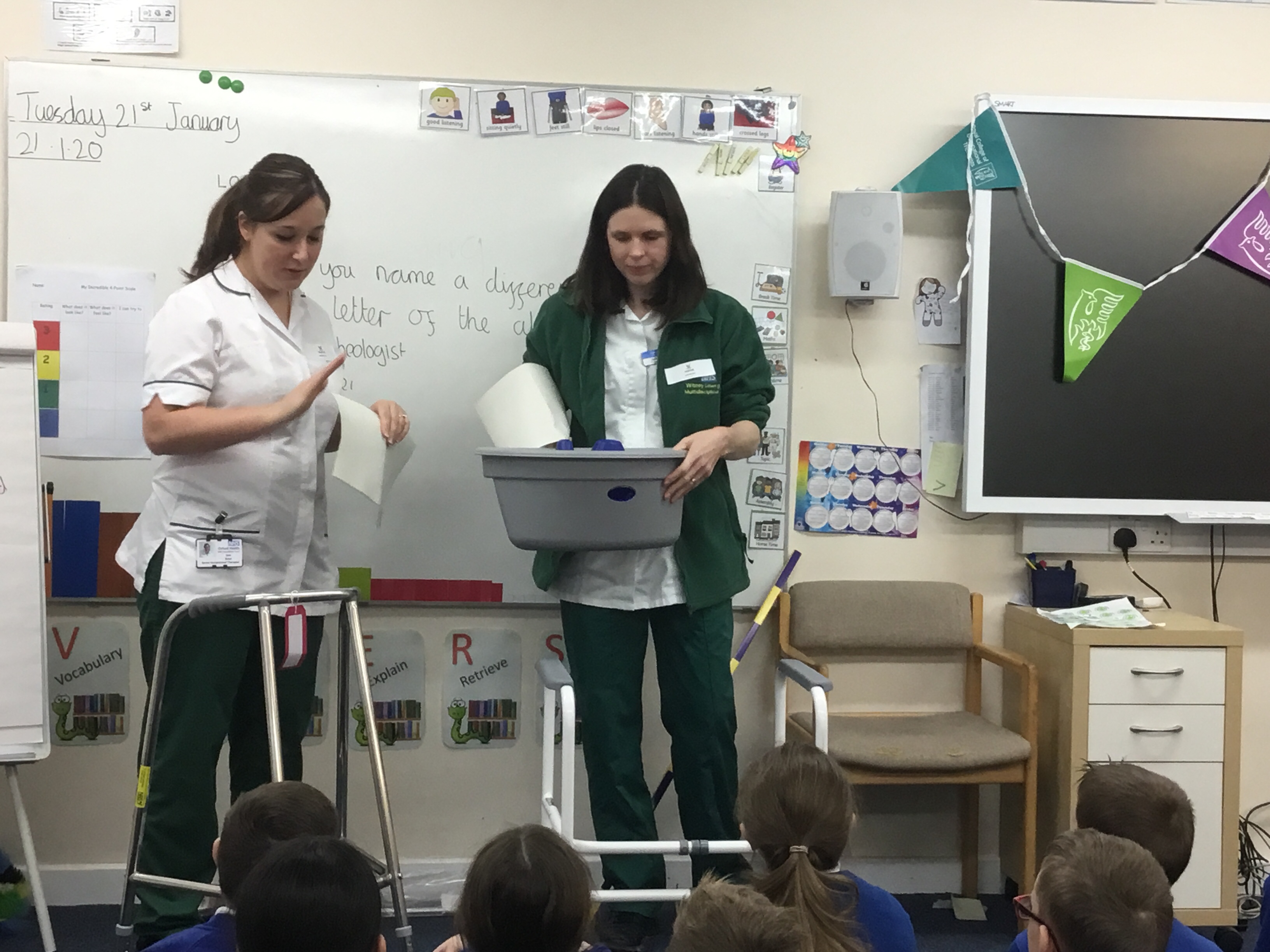 Today we have thought about different careers and what we might want to be when we are older. This morning we had a visit from Sian and Sasha who told us all about being an occupational therapist and showed us some of the equipment they give to help their patients.