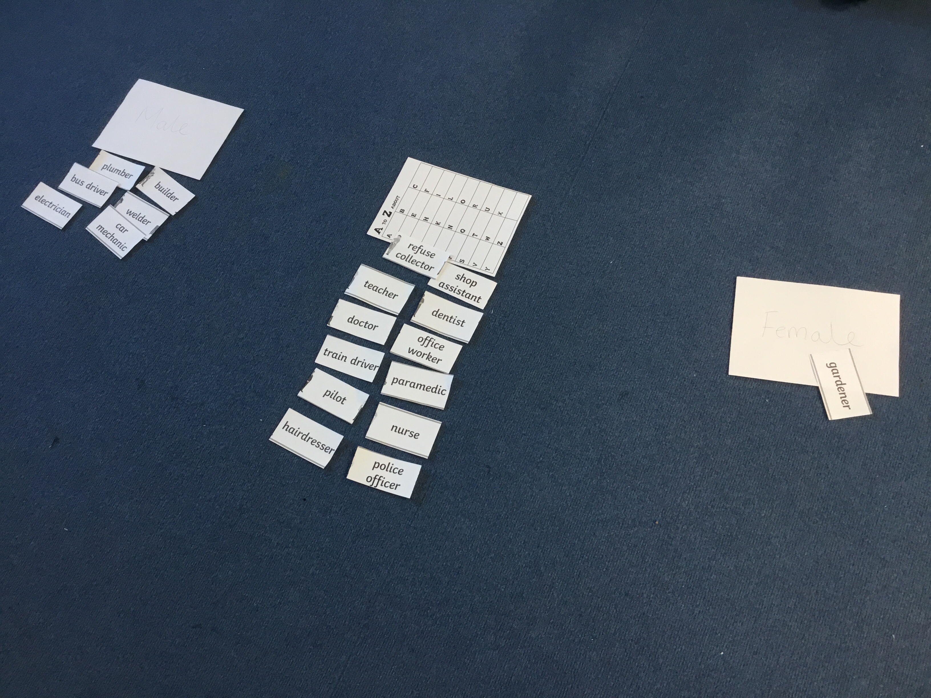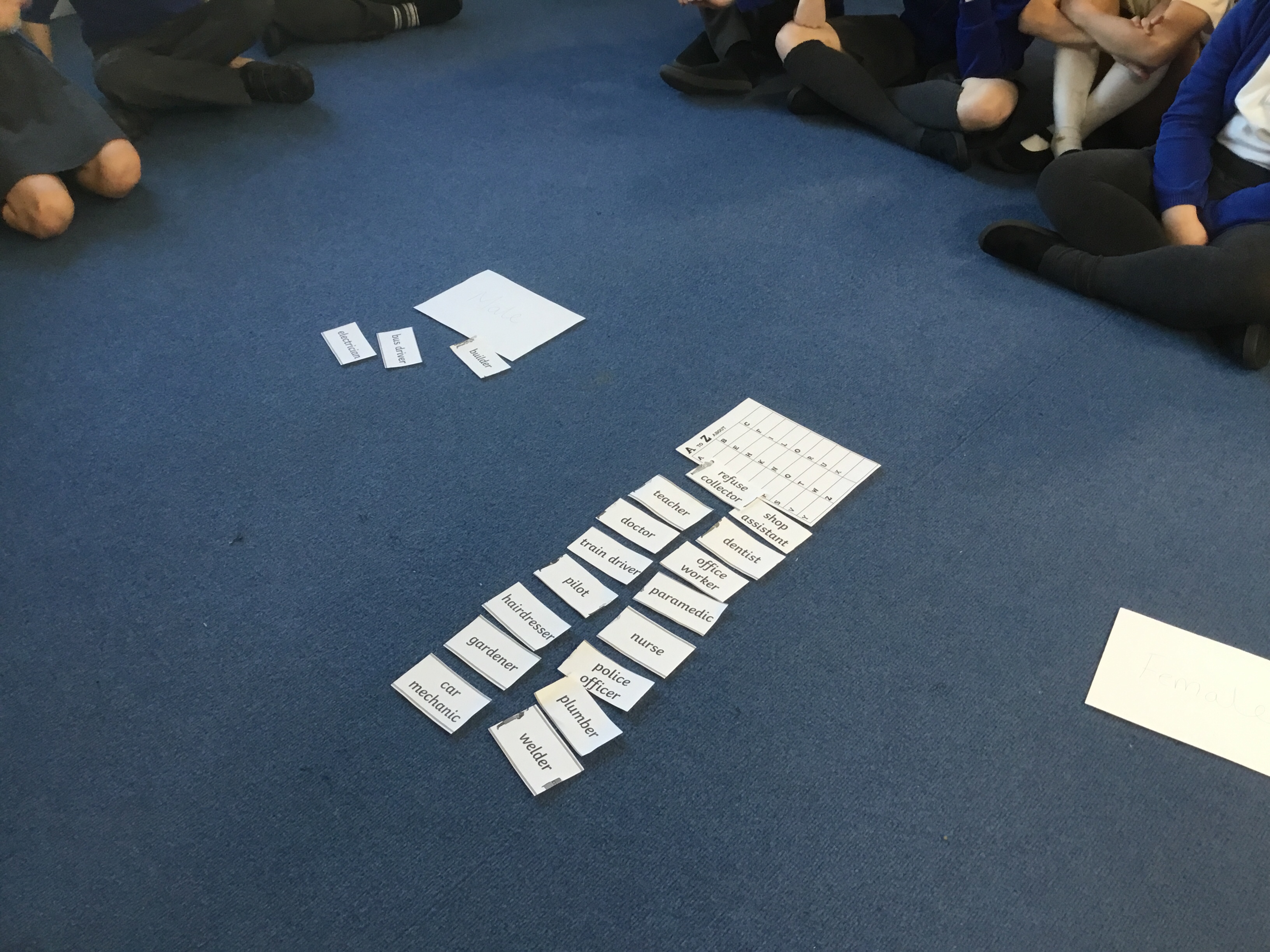 After this, we looked at different job people could have and completed an a-z job hunt. Then we discussed gender stereotyping in jobs and looked at male and female jobs. As a class, we thought that everybody should be able to access each job.
